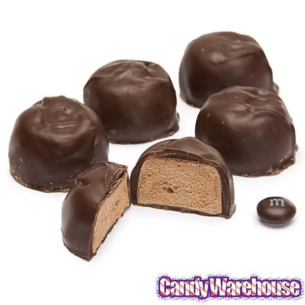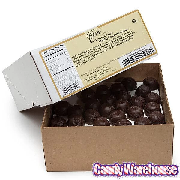 Box contains 5 pounds of Dark Chocolate Covered Chocolate Mousse Candy.