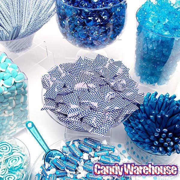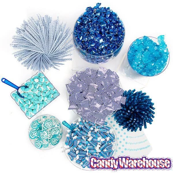 Don’t you wish your candy buffet could look just like the pictures? Well now it can, with this complete candy buffet kit in shades of mesmerizing blue. Eight varieties of our most popular treats have been selected to fill the included candy bowls perfectly, just like the pictures; even the heights and shapes of the bowls have been carefully planned to fill your space with maximum wow-factor. Scoops and bags are included too, so your guests can help themselves and take some home to enjoy later!