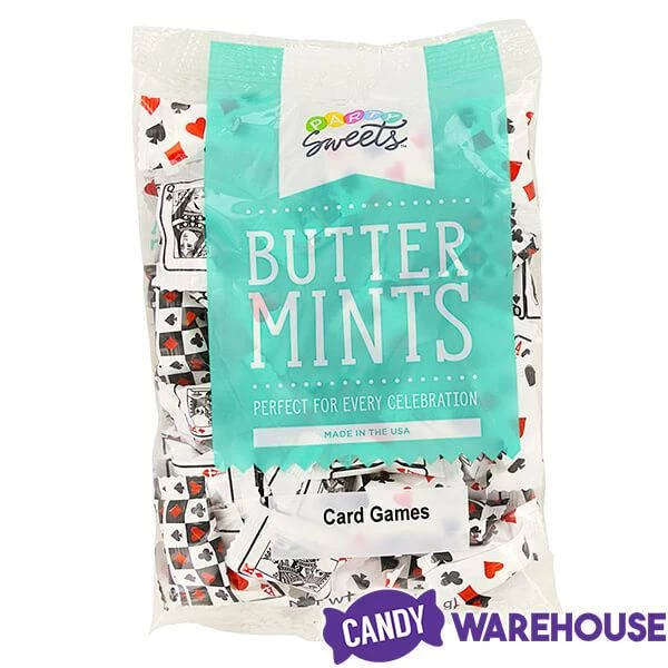 Case contains 300 buttermint creams in an assortment of 4 Card Games wrapper designs.