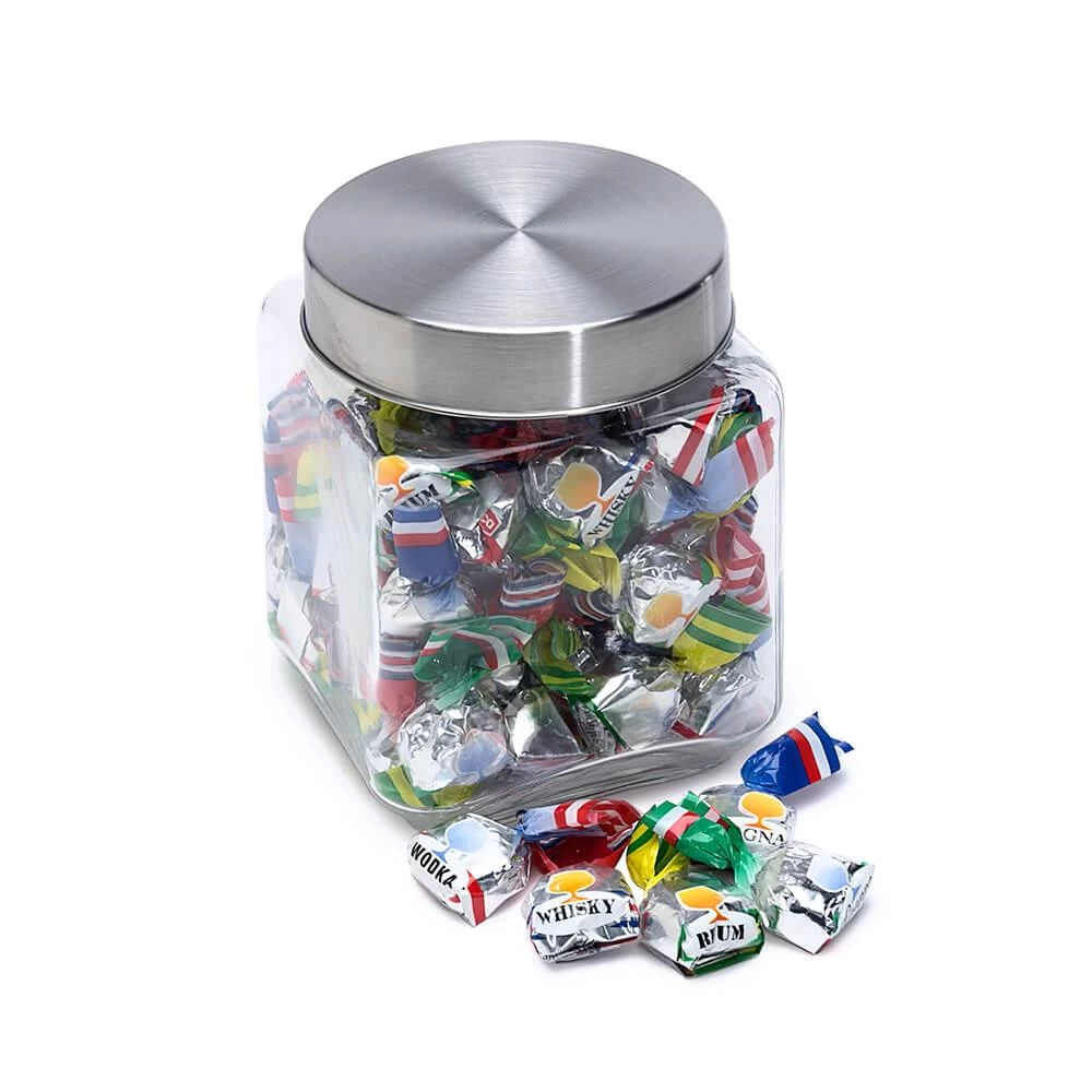Glass jar contains 13.2 ounces of Cedrinca Liquor Candies… that’s about 54 pieces.