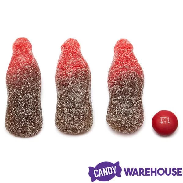 Bag contains 1 kilogram (about 2.2 pounds) of Sour Gummy Cherry Cola Bottles Candy.