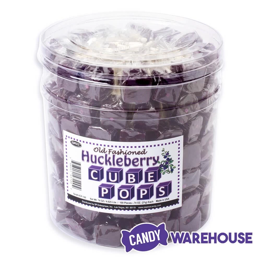 Tub contains 100 wrapped Huckleberry Cube Pops.