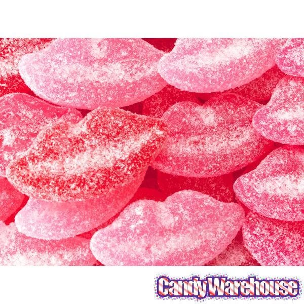 Bag contains 5 pounds of Sour Smooch Juju Lips Candy.