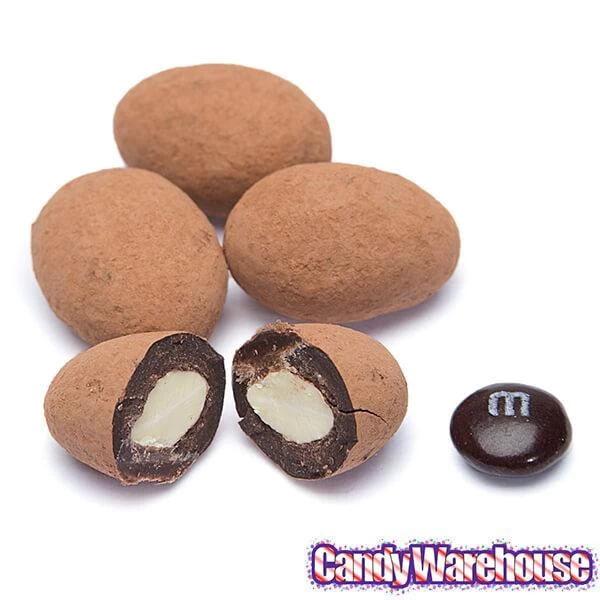 Plump roasted almonds dipped in dark chocolate, dusted with Dutch cocoa powder!
