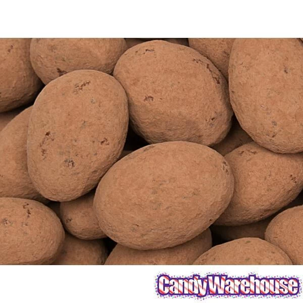 Bag contains 5 pounds of Cocoa Dusted Chocolate Almonds Candy. Made in the USA.