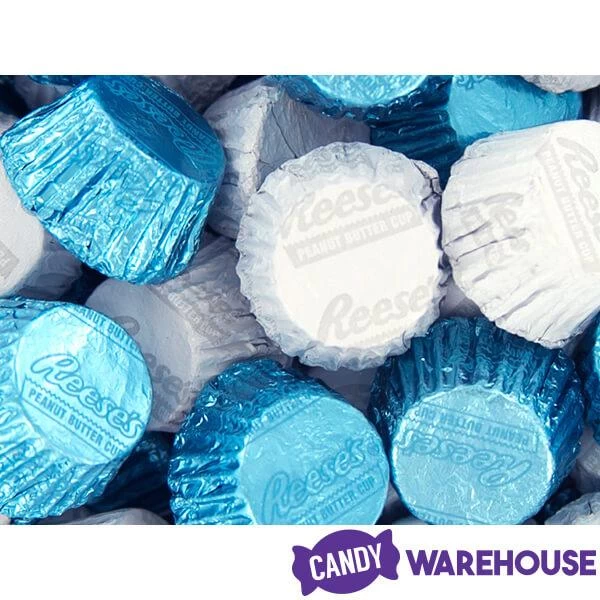 Box contains 400 pieces of Light Blue Foiled and White Foiled Reese’s Peanut Butter Cups Candy packed in two bags, each with a net weight of 66.7 ounces.