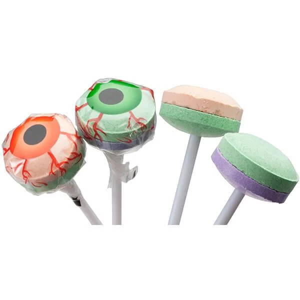 Box contains 45 wrapped Scary Eyeball Lollipops.