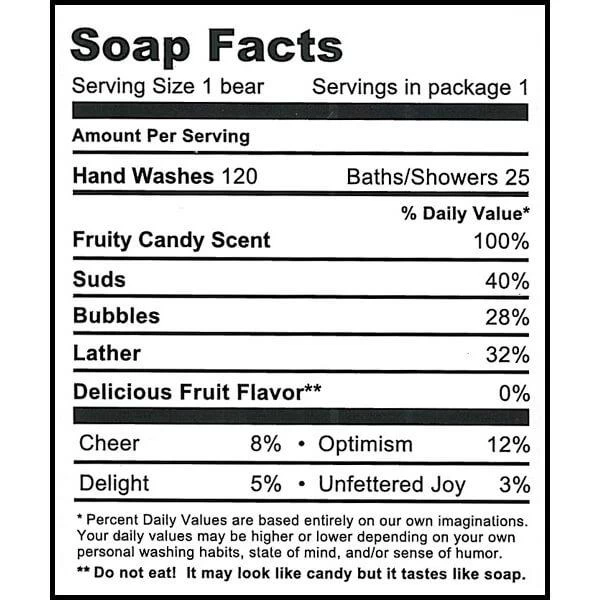 Just remember: These delightful, skin-friendly, glycerine-based soap bears are great for washing, but bad for eating.