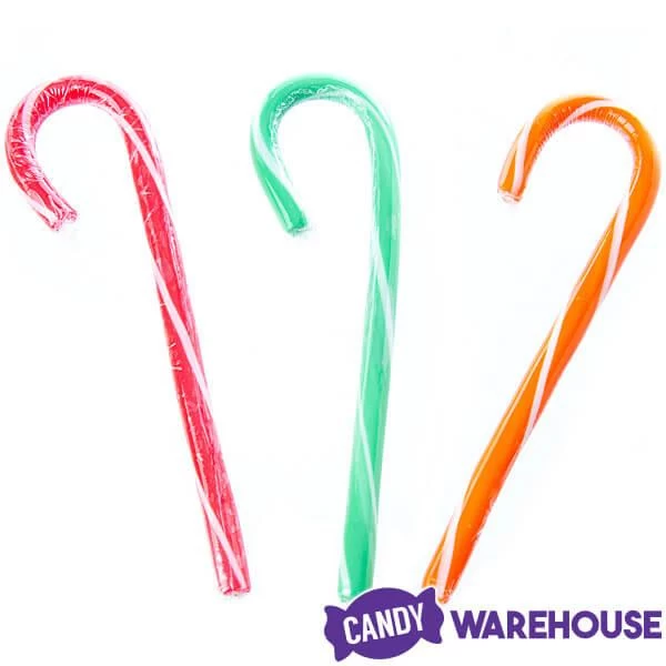 Perky fun flavors burst from these fruity candy canes featuring bright colors of red, orange, and green!