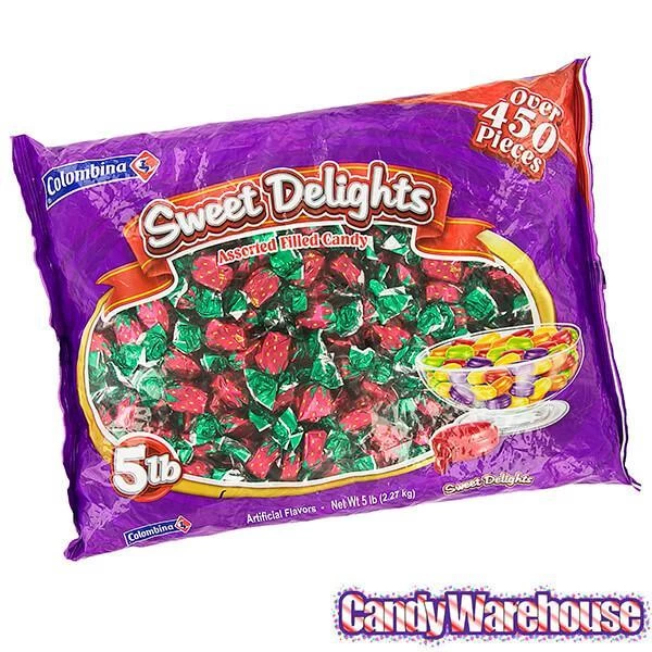 Bag contains 5 pounds of Strawberry Bon Bons Candy.