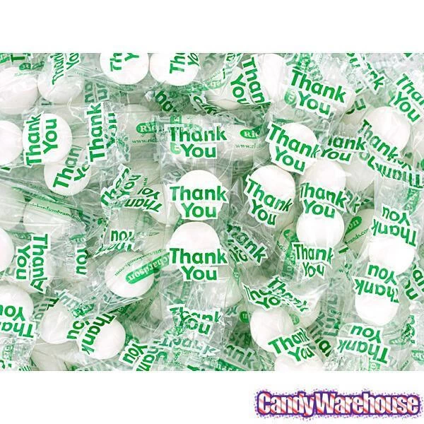 Delicious white candy-coated chocolate mints inside “Thank You” packets!