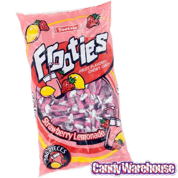Bag contains 360 Strawberry Lemonade Tootsie Roll Frooties Candy.