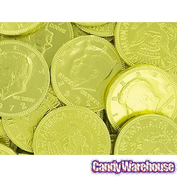 Aptly named for the Bullion Depository vault of the United States Department of the Treasury, these delicious milk chocolate coins are wrapped in yellow metallic foils embossed with images found on a real US half dollar coin.