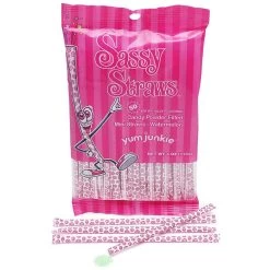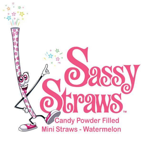 Bag contains 50 Sassy Straws Watermelon Candy Powder Filled Mini Straws.